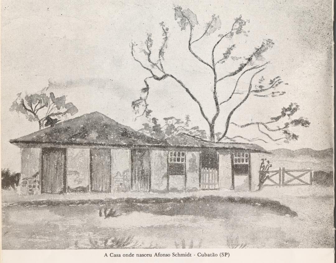 Ilustração da casa onde nasceu o escritor e jornalista Afonso Schmidt.